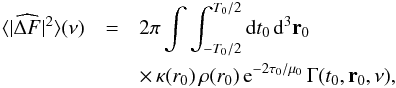 The final expression, Eq. (A.29), is recast to a more suitable form. To this end, we define the characteristic wave-number k0 = 2π/Λ where Λ is a characteristic length. We also define the characteristic frequency ν0 = 1/(2π τc) where τc is a characteristic time. Eventually, Eq. (A.29) leads to Eqs. (9), (10) where we have defined the dimensionless source function