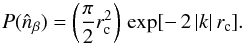 (B.2)The previous equation strikes for its simplicity, and can be readily used in semi-analytic studies. Changing β in the range 0.5−1 does not significantly alter P(k), hence Eq. (B.2) is an excellent approximation for the majority of clusters (Fig. B.1, red line). A remarkable feature is that the transition from real to Fourier space does not dramatically deform the profile, in tight analogy with Gaussian functions (∝exp [ − k2]). The spectrum is dominated by the power on large scales, with the core radius playing a crucial role; a progressively rising rc leads to an increase in both the normalization and steepness of the spectrum.