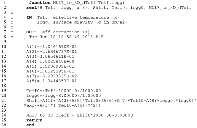1D ML2/α = 0.7 to 3D Teff corrections.