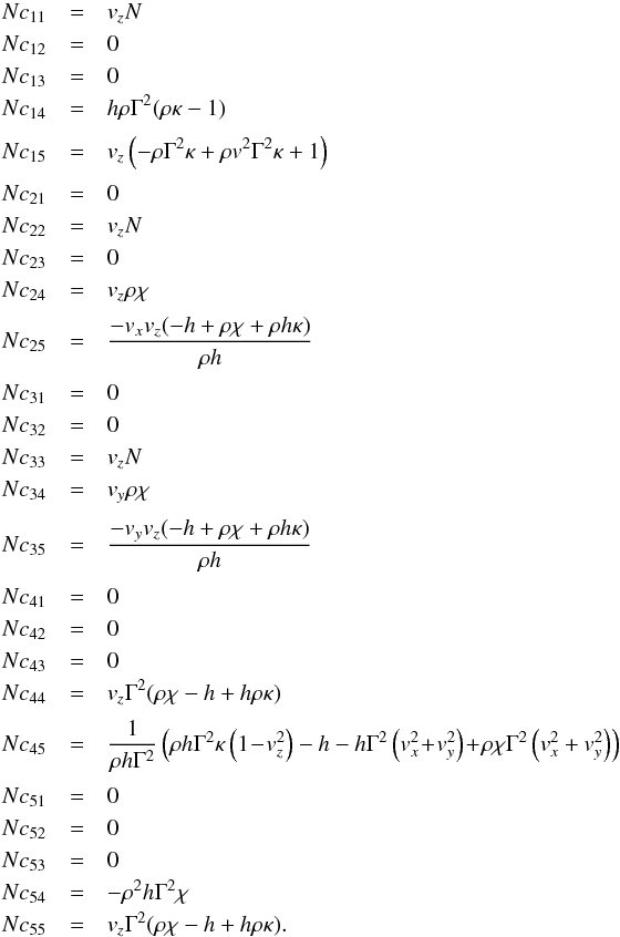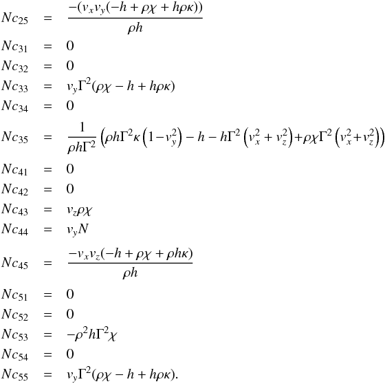 (A.12)Following Font et al. (1994) for a 1D flow with transverse velocity and the general definition of the enthalpy