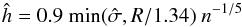 is the sample standard deviation and R the sample interquartile range.