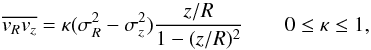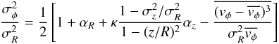 (A.2)where κ = 0 and κ = 1 correspond, respectively, to the extreme cases of a velocity ellipsoid aligned with the cylindrical (R, z, φ) and spherical (r, θ, φ) coordinate systems. Using higher-order velocity-moments of the collisionless Boltzmann equation, Weijmans et al. (2008) obtained the following expressions (see their Appendix A):