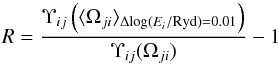 ji(T,κ) are dominated by the contribution from the energies near the excitation threshold at Ei = ΔEij. The averaging of Ωji cannot be performed in the energy interval of the coarse Ei grid containing the excitation threshold. As a result, inaccurate extrapolation of the first point of the ⟨ Ωji ⟩ to the energy ΔEij causes departure of the Υij( ⟨ Ωji ⟩ Δlog (Ei/ Ryd) = 0.01) from the Υij(Ωji) calculated using the original Ωji data.