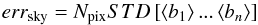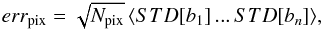 (A.2)where Npix is the number of pixels in the galaxy aperture, STD [bn] is the standard deviation of the values of all pixels in sky box n, and ⟨ bn ⟩ is the average of all pixels in sky box n (Voyer et al. 2014). The total uncertainty on the extracted flux is then given by