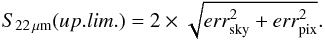 (A.3)to which the calibration uncertainty errWISE should be added for estimating the total photometric uncertainty on the data. Given that errsky and errpix are the dominant source of error, we consider all galaxies with S22 μm/errtot> 1 here as detections. As in Boselli et al. (2003b) for undetected galaxies, we estimate an upper limit defined as