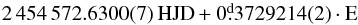 We found high left-hand side peaks around the main frequency and its harmonics. If we suppose that fm = 0.00585 d-1 is a modulation frequency, the period of the modulation would be longer than the data set. According to that this star may show a long-period Blazhko-modulation, but more data would be needed to confirm this finding. Another set of modulation-like frequency difference appears in the data set (Fig. 13, Table F.1). We denote the corresponding frequency fb. Neither fm, nor fb can be found in the frequency spectrum, but they only appear through combination frequencies. Even combination frequencies involving both fm and fb can be identified. We note here that as we demonstrated in Sect. 4.3, f′ has temporal amplitude variation, and this is the most probable culprit causing the appearance of the fb modulation frequencies. The strongest argument favoring this scenario is that fb appears only close to and in combination with f′, and is not seen around the main pulsation frequency, f1. In addition, frequencies associated with the orbital period of the satellite and its daily aliases are seen at f = 13.967924,14.974027,12.969585 d-1 as usual in CoRoT data. We omitted these peaks from Table F.1. The following epoch for maxima was found: (F.1)or taking a gradual period change into account:
