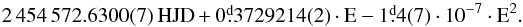 Table A.1 contains the frequencies that we found during the frequency analysis. The star pulsates with a period of 0.485299 days. The following epoch for maxima was found: (A.1)Digits in parentheses denote the uncertainties. Nine harmonics can be found in the frequency spectrum. No additional frequencies were found.