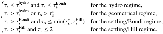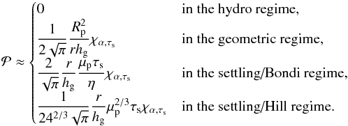 (C.1)We thus separate small particles with τs ≤ τs,ν ~ 0.32α which have not settled from larger particles for which hd(τs) <hg.