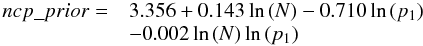 We cannot use the scaling relation given in Scargle et al. (2013a) for our data set because it has different statistical properties than the simulated data set used by Scargle et al. (2013a). First, our events are affected by Poissonian noise and not by Gaussian noise. Second, our event lists with about ~4000 counts is longer than the published simulation limited to 1024 counts. To calibrate the relation between ncp_prior (the prior of the number of block) and the false positive rate (p1), we simulate 100 constant light curves with Poisson noise around a level of 0.1 count s-1, which is the typical non-flaring level measured by XMM-Newton/EPIC pn during our observations. For each sequence of 100 simulations, we increase the ncp_prior value from 2 to 9 by a step of 0.5 and we compute the number of change points detected. The percentage of change points detected in 100 simulations determines the p1. We repeat this operation for different numbers of count N in the light curve (from 1000 counts to 6000 counts by step of 1000 counts). With the p1 values and the corresponding ncp_prior, we can create the graph presented in Fig. A.1. Then, we can take different values of p1 and report the relation between the count number and ncp_prior that satisfied p1. An example with p1 = 0.05 is given in the bottom graph of Fig. A.1. The dashed line is the linear fit of the curve. Thus, we have the same number of relations between N and ncp_prior as the number of value of p1 that we choose. By combining these relations, which relies p1, N, and ncp_prior, we find our calibration: (A.1)with N the number of events in a range of [1000:6000] counts. For N lower than 1000, the last term is lower than 0.01, which is negligible. For a probability of false detection equals exp(−3.5) and N = 4000, ncp_prior = 7.0099.