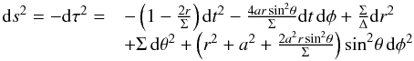 We use the Kerr metric in Boyer-Lindquist coordinates: (C.1)with τ the proper time, t the observed time, r the radial distance in gravitational radius, a the dimensionless spin parameter, Σ = r2 + a2 cos2θ, Δ = r2 − r + a2, and θ = 0 defining the spin