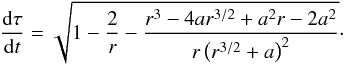 (C.2)Figure C.1 shows the time dilatation as a function of the radial distance plotted from the innermost boundary of the circular orbit, i.e., rg for a = 1.