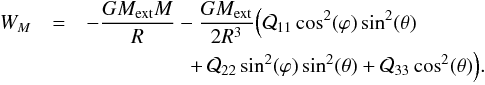 The potential energy W of a body subject to the action of the external field Uext(x) (whose Laplacian is null in the region occupied by the galaxy) is (Jackson 1998)