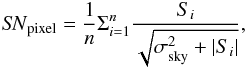We also defined the signal-to-noise (SN) per pixel as where σsky is the standard deviation of means measured in more than three boxes around the galaxy, Si the signal, and n the number of pixels belonging to a galaxy. The total SN of the galaxy was then obtained by multiplying the SNpixel by