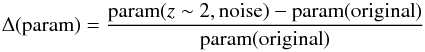 Following the method described in the previous section, we estimated sizes and morphological parameters in the continuum and line images. We adopted the same method in the case a galaxy was simulated to be at z ~ 2 and observed in different depth surveys. To quantify the morphological parameter variations owing pixel resampling and added noise, we defined Δ(param), (A.1)which represented the difference between the measurement of a parameter in the simulated and in the original image, normalized to the value in the original image. By definition, Δ(param) tended to be zero when the two measurements were very similar, tended to be equal to −1 when the measurement in the simulated image was much smaller than in the original one, and equal to 1 when the measurement in the simulated image was twice that in the original one. We calculated Δ(param) for every galaxy and estimated the mean and the standard deviation.