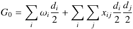 For polyatomic molecules, the following expression extends the diatomic formulae where the different vibrational degrees of freedom are included: (B.2)where ωi refers to the harmonic frequencies, di is the corresponding degeneracy, and xij stands for the anharmonic terms. The sum is performed over the number of vibrational modes. In the case of polyatomic linear molecules, the number of vibrational modes is 3N-5, whereas it is 3N-6 in the general case where N is the number of nuclei in the molecule.