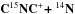 No information is available for this reaction.The bimolecular exit channels 12C+ + NCN and C2+/N2 are both endothermic by 170 and 76 kJ/mol, respectively. We performed DFT calculations (at the M06-2X/cc-pVTZ level) to explore the possibility of isotopic exchange. Direct N exchange is impossible because it would require simultaneous bond formation, rearrangement, and bond breaking. However, isotopic exchange could take place through adduct formation. No barrier was found in the entrance channel for NCNC+ formation (exothermic by 167 kJ/mol). The most favorable NCNC+ isomerization pathway is cyclic. However, the position of the c-NC(N)C+ transition state (TS) is highly uncertain and is found to be below the entrance channel at M06-2X/cc-pVQZ level (–14 kJ/mol) but slightly above the entrance level at the RCCSD(T)-F12/aug-cc-pVTZ level (+19 kJ/mol). In any case, the TS position is close to the entrance level so that the NCNC+ back dissociation is favored at room temperature. Isotopic exchange may, however, be enhanced at low temperature and may become the main exit channel. Considering a T-1 temperature dependence of the adduct lifetime, we tentatively suggest kf = 3.8 × 10-12 × (T/ 300)-1 cm3 s-1.