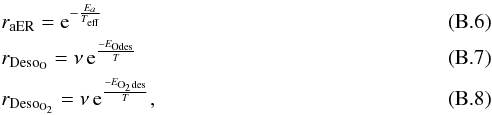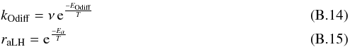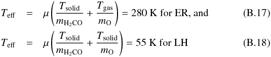 are the thermal diffusion probability of O atoms and the reaction probability of H2CO+O via LH, respectively. The activation barrier Ea is derived inverting the normalized Arrhenius equation: