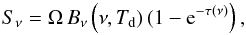 We have generated reduced data products for the Orion A region using HIPE processing to level 1 followed by final level 2 Scanamorphos processing (version 24.0, using the galactic option, Roussel 2013). The column density (and temperature) maps were derived in a similar way as those presented in Stutz et al. (2010, 2013) and Launhardt et al. (2013), with the total power emission levels at each of the four wavelengths calculated using Planck and IRAS data (Bernard et al. 2010). We briefly summarize the steps we used to generate the N(H) and temperature maps here and refer to the above works for more details. We applied the total power emission level corrections for each of the 160 μm, 250 μm, 350 μm, and 500 μm intensity maps (Bernard et al. 2010). We convolved the data to the largest beam: the 500 μm beam, with ~38′′ FWHM. We used the azimuthally averaged convolution kernels from Aniano et al. (2011). We then re-gridded the data to a matched coordinate system and pixel scale, in this case, we adopted an 18′′ pixel scale (see Appendix B for more details). The conversion to matched units assumes the beam sizes listed in the SPIRE instrument handbook. We fit the SED of each pixel assuming a modified blackbody function of the form (A.1)where Ω is the solid angle of the emitting element, Bν(Td) is the Planck function at a dust temperature Td, and τ(ν) is the optical depth at frequency ν. Here, the optical depth is given by