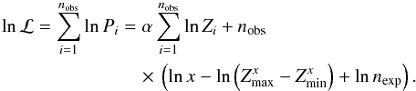 It is straightforward to show that the likelihood is maximized when the models are restricted to those with nexp = nobs. Hence, we simplify the notation by n = nexp = nobs and obtain