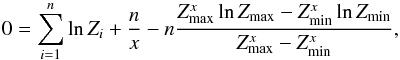(B.1)Equation (B.1) represents the analytical error solution assuming the power-law model accurately reflects the distribution of data values. Therefore it represents a lower limit for the errors. Alternatively, the errors can be estimated using the Δ χ2 = 1.0 interval, which compares well to those derived using the minimum-variance bound (see Table B.1 for a comparison between the two). The power-law indices and Δ χ2 = 1.0 errors are listed in Table 1.