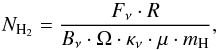 To obtain abundances, we derived H2 column densities either from dust maps obtained with Mambo with the IRAM 30 m telescope at 1.2 mm (Beuther et al. 2002b) which provides a resolution of 11″, or the galactic plane survey ATLASGAL (Schuller et al. 2009) at 870 μm with a resolution of 19.2″, or the SCUBA Legacy Catalog (Di Francesco et al. 2008) at 850 μm with a resolution of 22.9″ (see Table A.1). The continuum data were smoothed to 29″ resolution to be beam-matched with the IRAM 30 m observations at 3 mm and the SMT molecular line data. H2 column densities were calculated from the observed peak intensities assuming optically thin emission and LTE following Eq. (A.5) (Schuller et al. 2009). The dust opacities used were κ850 μm = 1.48, κ870 μm = 1.42, κ1.2 mm = 0.97, interpolated values from Ossenkopf & Henning (1994), assuming grains with thin ice mantles, gas densities of n = 105 cm-3, and a gas-to-dust mass ratio R = 100. With these assumptions the H2 column density is calculated as (A.5)The uncertainties in the derived H2 column densities are mainly based on the dust and temperature properties and are about a factor of 3. A more detailed description of the derivation is given in Gerner et al. (2014).