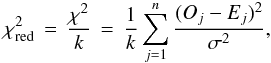 To confirm our results, we devised an alternate method to measure particle clumping, based as much as possible on very different principles. Our second method is to perform a chi-squared test on ⟨ ρp ⟩ zt, without sorting the grid cells. We use the reduced chi-squared statistic, (A.3)where k = n − 1 is the degrees of freedom, Oj is the jth observation (value of ⟨ ρp ⟩ zt on grid cell j), Ej = ⟨ ρp ⟩ is the jth expected density for a uniform distribution, and σ2 is the expected variance between different measurements. If