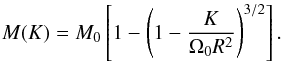 The solid line in Fig. A.5 shows the initial mass spectrum M(K), whereas the open circles present the mass spectrum obtained at time 1.03 × tff = 0.551, where tff is the free-fall time for a nonrotating sphere of the same density and radius. The numerical resolution is 200 × 200 grid zones. By t = 0.551, the density near the center of the sphere has increased by more than three orders of magnitude, but the deviation of the mass spectrum from the initial configuration is negligible everywhere except at lowest values of K. This deviation is a manifestation of angular momentum nonconservation near the rotational axis caused by imperfections in the interpolation procedure across the inner r-boundary. Nevertheless, the total mass of gas that suffers form the angular momentum nonconservation is just below 1%, and therefore should not affect notably the global evolution.