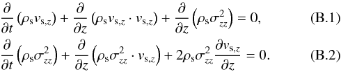 Testing the stellar hydrodynamics Eqs. (6)−(8) presents a certain challenge since stellar systems are described by a stellar dispersion tensor, which may be anisotropic, rather than by an isotropic pressure. Fortunately, some of the test problems considered above can be adapted to stellar hydrodynamics as well. The matter is that the equations of stellar hydrodynamics can be formally made identical to those of gas hydrodynamics for a specific set of initial conditions (note that the continuity equations are always identical). Indeed, for a one-dimensional flow along the z-direction (with zero gravity and no star formation), Eqs. (7) and (8) become These equations become identical to the corresponding gas dynamics equations for ρgvz and ϵ, if we set
