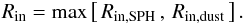 the maximum of that determined from SPH simulations and the dust condensation radius: