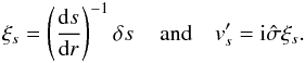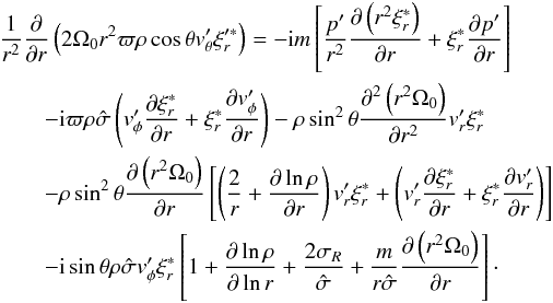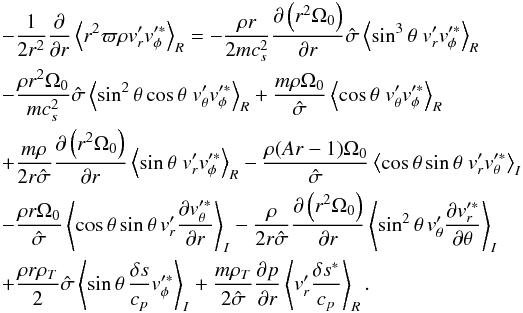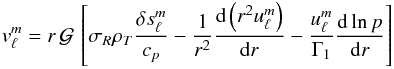 (A.2)One can then express the Eulerian perturbation of the entropy in terms of the Lagrangian one, using δs = s′ + ξrd⟨s⟩/dr, where ξr is the radial component of the wave displacement. It allows us to rewrite the divergence of the wave flux in the momentum equation (see Eq. (39)) such as