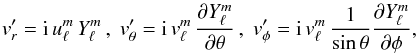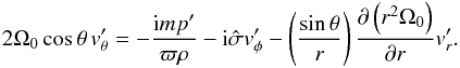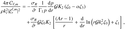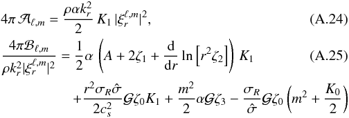 Finally, after projection onto the spherical harmonics and using Eqs. (A.19), (A.21), and (A.22), one obtains for a mode of a given angular degree (ℓ) and azimuthal degree (m) an expression of the form (A.23)with