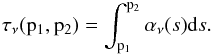 (B.2)where τν is the optical depth between two points, p1 and p2, along the ray of sight defined as