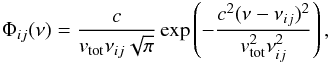 (B.7)where νij is the central frequency of the transition and c the speed of light. The parameter vtot gives the total line broadening factor taking into account the assumed microturbulent velocity vturb and the kinetic velocity vkin due to the kinetic temperature Tkin: