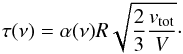 (B.14)where τ is the effective optical depth of the observed line. We note that this formula is well suited in the case of proto-circumstellar disks. For other geometries and scenarios other approximations might give better results (see, e.g., de Jong et al. 1975 or Osterbrock & Ferland 2006). At this point an approximation of the optical line depth is made. As it is connected to the local velocity field V, microturbulence vturb, and gas density, we use the following expression (see also Pavlyuchenkov et al. 2007):