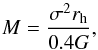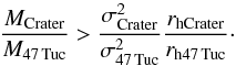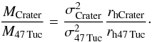 To derive a lower limit, we assumed that Crater and the globular cluster 47 Tuc are in dynamical equilibrium and that the virial theorem applies. For this system, the mass, M, can be expressed in terms of its velocity dispersion, σ, and exponential radius, rh (see e.g. Spitzer 1987) : (B.1)where G is the gravitational constant. We thus may write