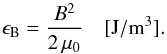 (A.2)In the above equation, the magnitude of the magnetic field is measured in Tesla and the magnetic energy density is in Joules/m3.