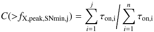 C is given by the normalised, cumulative distribution of observation on-times, i.e.: (B.2)where n is the total number of observations in the sample being considered (and will, in general, include observations where no flares were detected), and the set of [fX,peak,SNmin,i,i = 1,n] is ordered by increasing value.