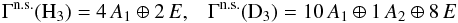 . This means that the symmetry representations of H3 and D3 in S3 can be reduced into the following direct sums (denoted by ⊕):