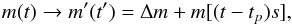 We selected all sufficiently well sampled S-class light curves from Strope et al. (2010). In Fig. A.1, these light curves are shown with their peaks aligned by shifting linearly along the time axis. We then used the following transformation to match the light curves: (A.1)where m(t) is the magnitude in the frame t, m′(t′) is that in the transformed frame t′ = (t−tp)s, tp is the time of the peak of the light curve, Δm the magnitude shift, and s the time stretch factor.