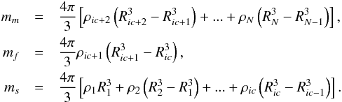 Here, we follow the same notation as Coyette et al. (2012). With this, we can write12 for the mass of the mantle, the fluid, and the inner core (B.1)The mean density of the inner core reads as