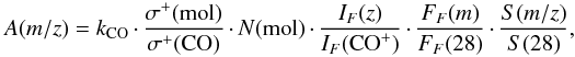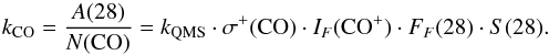 As we explained in Sect. 1, CO ice irradiation experiments under UHV conditions can be used as a reference to calibrate the QMS signal. Equation (A.1) can be rewritten as follows: (A.2)where kCO is