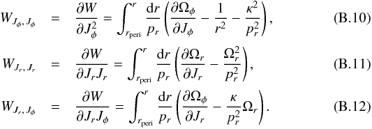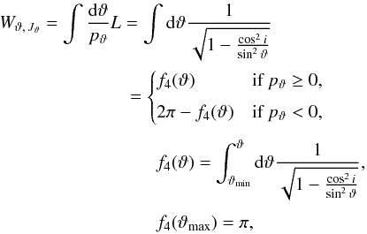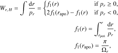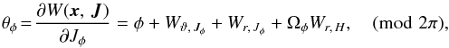 (A.12)where the term Wr,Jϑ + ΩϑWr,H vanishes after one radial period, while the term Wϑ,Jϑ contains the dependence on ϑ and increases by 2π after one period in ϑ.